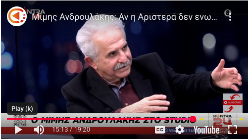 Εντάχθηκε στην αριστερά από τα μαθητικά του χρόνια στην Κρήτη ίσως -όπως λέει- “γιατί ήταν η μόνη που δε μας έκανε να ντρεπόμαστε για τη φτώχεια μας”.